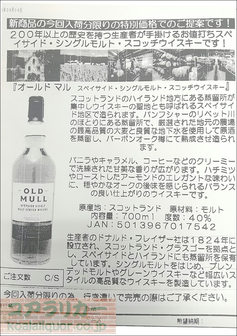 オールド・マル・ブランドの起源は19世紀に遡り、当時グラスゴーでジョン・ホプキンスによって瓶詰めされていました。この現代版は、伝統的なスタイルである滑らかでフルーティー、そして甘い味わいで知られており、様々な蒸留酒をブレンドすることでスペイサイドの心地よい口当たりを踏襲しています。 ノンビンテージであり、特定のエディションの継続ではなくアクセスしやすい日常的なスタイルのスタンドアローンリリースです。