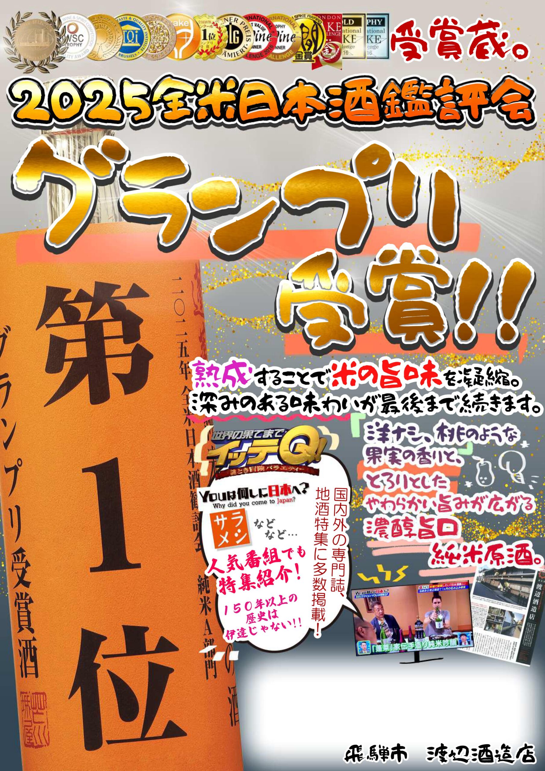 「蓬莱 無濾過の酒 純米原酒」は搾り たての純米原酒を6ケ月土蔵の暗闇で監禁 熟成させた原酒です。一般的な日本酒の ように炭素ろ過や割水によって画一的な 味に仕上げるのではなく、米の旨みを 凝縮させストレートに表現しました。 口に含んだ途端、コクと濃醇な味わいが ぐっと口中に広がります。流麗さに加え、 深みある味わいが最後まで続き爽快な 酸味とともに余韻を残して消え去ります。 冷酒として楽しむのが一般的ですが、 50度の燗酒にすると旨みとキレがさらに 引き立ちます。飛騨の地酒らしさを味わえる 「無濾過の燗酒」もお楽しみください。 数量限定